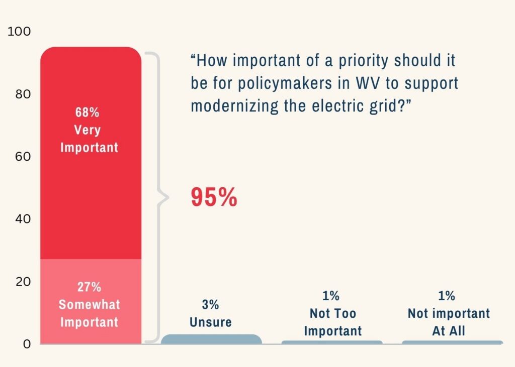 A recent poll found that ninety-five percent of West Virginia voters say modernizing the electric grid should be a priority for state policymakers. Sixty-eight percent called it “very important,” a level of agreement that cuts across party lines, regions, and age groups.